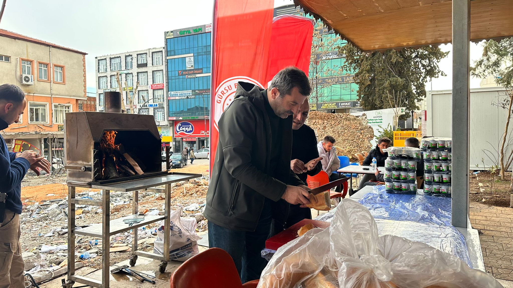 Depremin ilk anlarından itibaren tüm imkanları ile seferber olan Gürsu Belediye Başkanı Mustafa Işık, bir kez daha moral ve destek olmak için meclis üyeleri ile birlikte bölgeye gitti. Başkan Işık, temel ihtiyaçların yanı sıra bu kez depremzedelere çağ kebap da ikram etti.