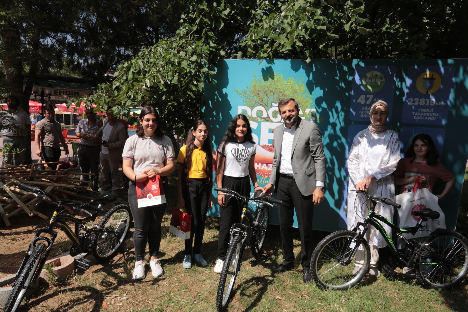 “Doğamızın korunması duyarlılığı vurgusu yapmak amacıyla düzenlediğimiz etkinliklerimizle, özellikle yeni nesillerimize dokunmak istedik” diyen Gürsu Belediye Başkanı Mustafa Işık, “Doğamızı koruma duyarlılığıyla yetişen nesillerimiz sayesinde dünyamız korunacak. Dünyamızı korumak hepimizin sorumluluğu. Bu bilince sahip yeni nesillerle, inşallah, kaynakları korunmuş, temiz bir dünyada yaşamak bizlere ve gelecek nesillere nasip olacak. Belediye olarak gerçekleştirdiğimiz kültürel etkinliklerde de sıfır atık projesini destekleyen uygulamalar yaparak çevrenin korunmasına duyarlılık kazandırıyoruz. Dönüştürülebilir atıkları getiren çocuklarımıza ve hemşehrilerimize ücretsiz sinema ve tiyatro biletleri hediye ediyoruz. Çocuklara evlerdeki bütün atıkların çöp olmadığını, sıfır atık sistemiyle birçoğunun geri dönüştürülerek doğanın ve kaynakların korunmasına katkı sağlanacağını öğretiyoruz” dedi.