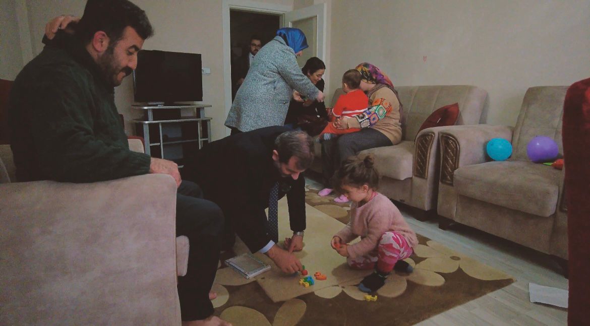Gürsu Belediye Başkanı Mustafa Işık ve Eşi Sümeyye Işık, deprem felaketinden sonra Gürsu’ya yerleşen depremzedelerin acı hatıralarını unutturmak amacıyla çikolata yapıp, evlerine ziyarette bulundu.