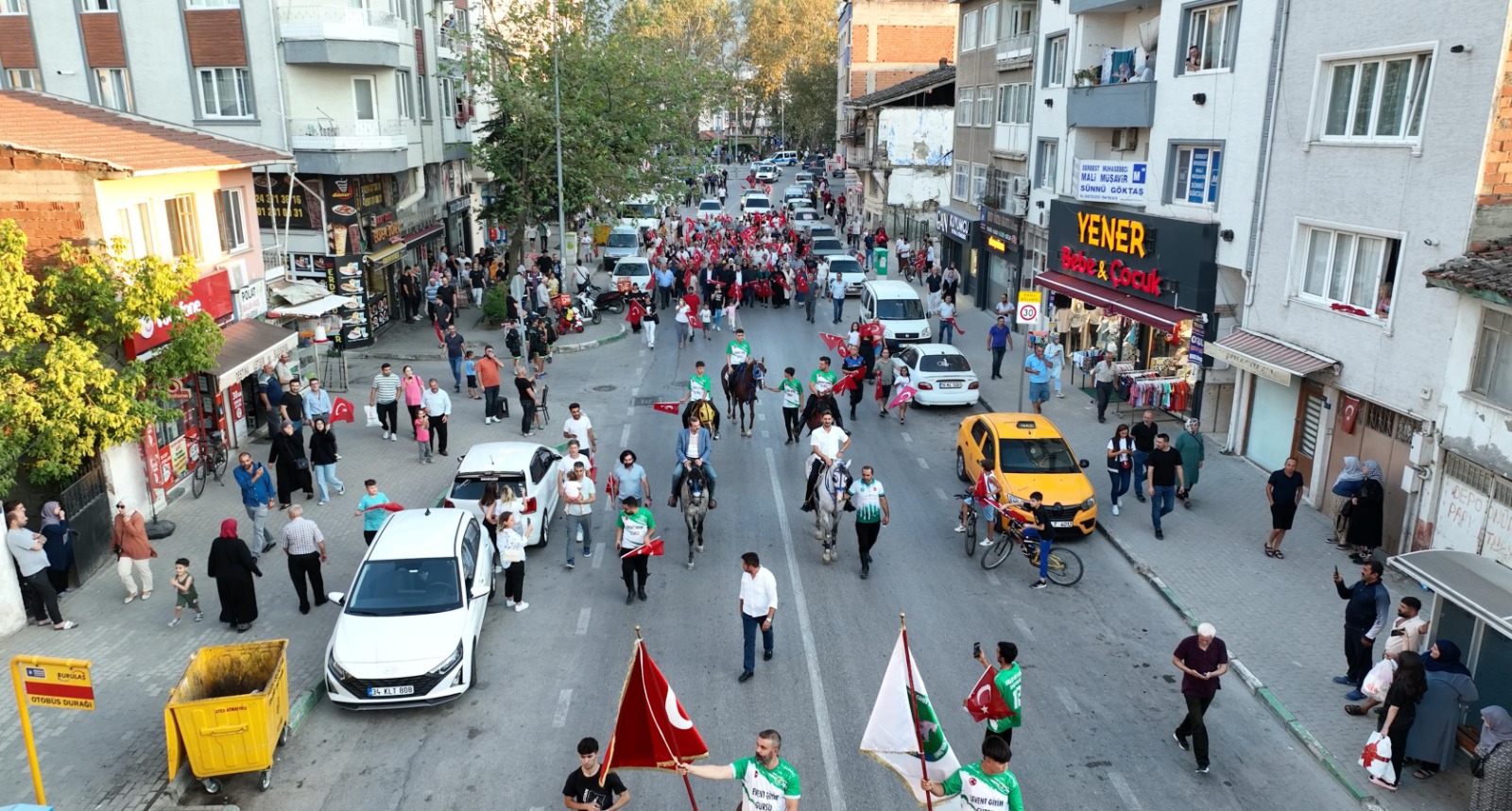 Ata binerek yürüyüşü başlatan Gürsu Belediye Başkanı Mustafa Işık, halkı selamladı. Mehteran ekibinin öncülük ettiği yürüyüşün arkasında atlı kortej yer aldı. İlçe protokolünün eşlik ettiği yürüyüşe vatandaşlar da yoğun ilgi gösterdi.