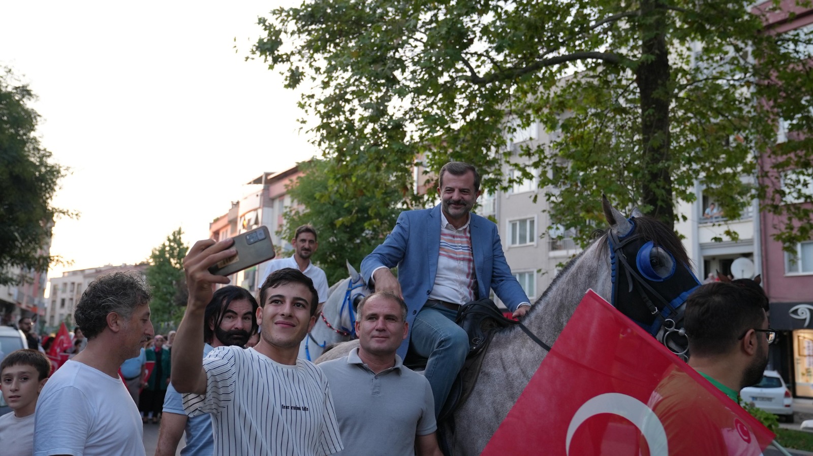Gürsu Belediyesi’nin 30 Ağustos Zafer Bayramı etkinlikleri kapsamında düzenlediği kortej yürüyüşü renkli görüntülere sahne oldu. Atla kortejin başına geçen Gürsu Belediye Başkanı Mustafa Işık, kortej yürüyüşüne katılanlarla bayram coşkusunu paylaştı.