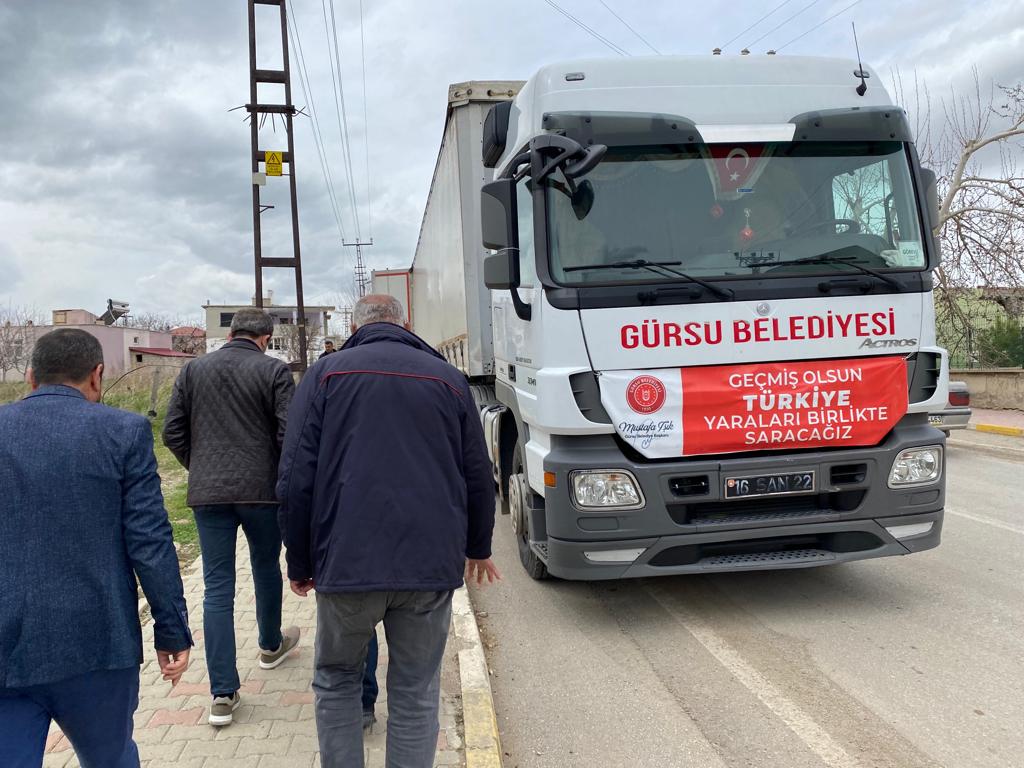 Gürsu Belediye Başkanı Mustafa Işık, deprem bölgesindeki ziyaretlerine devam ediyor.