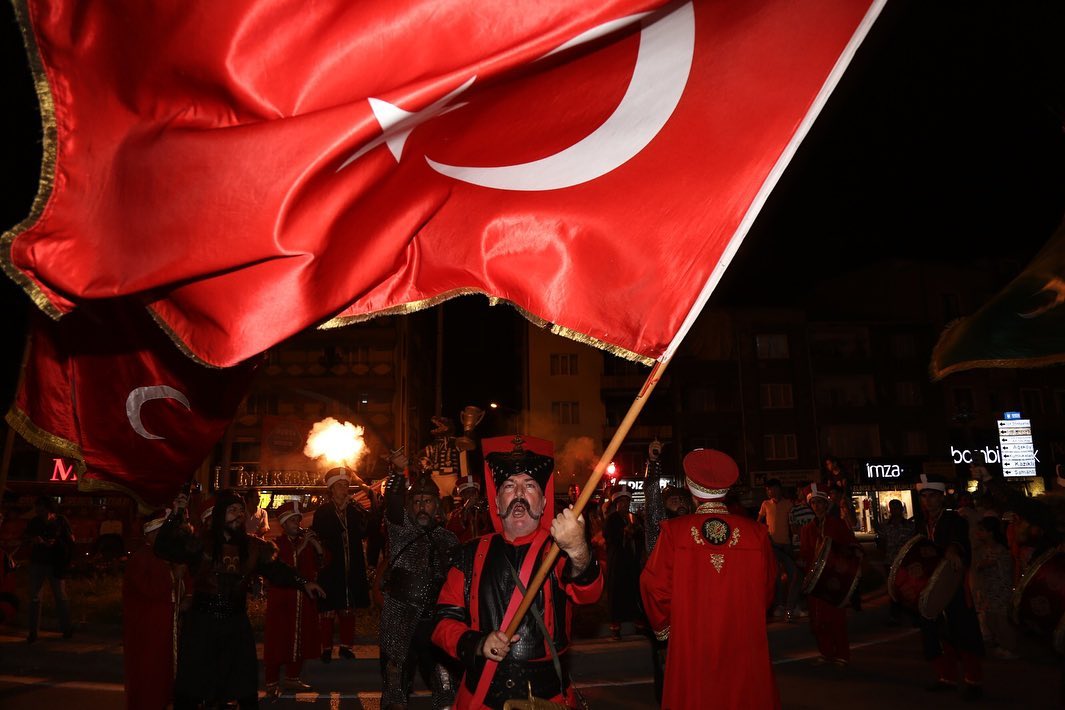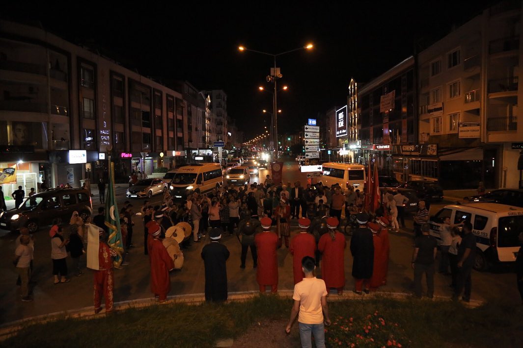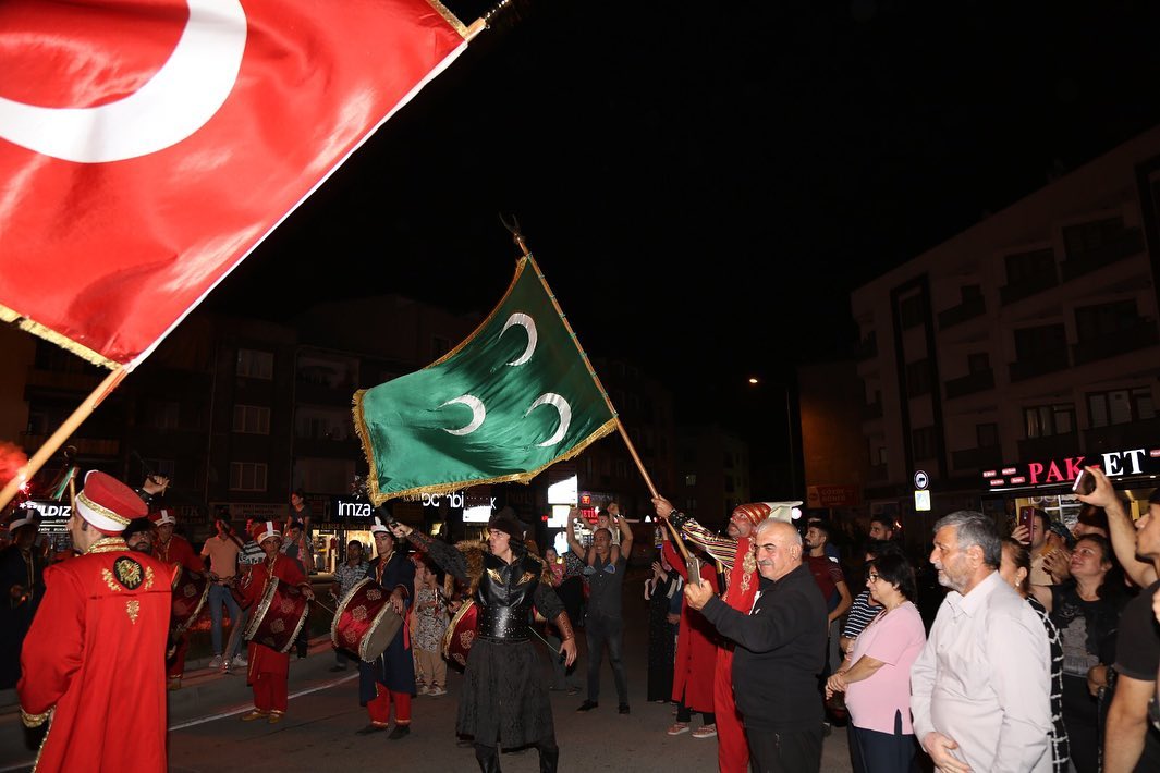 Kutlama programları kapsamında, Gürsu’nun ana caddelerinde gösteri sunan Ay Yıldız Mehteran Takımı’nı evlerinin balkonlarından alkışlayan, coşkuya eşlik eden Gürsulular da renkli görüntüler oluşturdu.