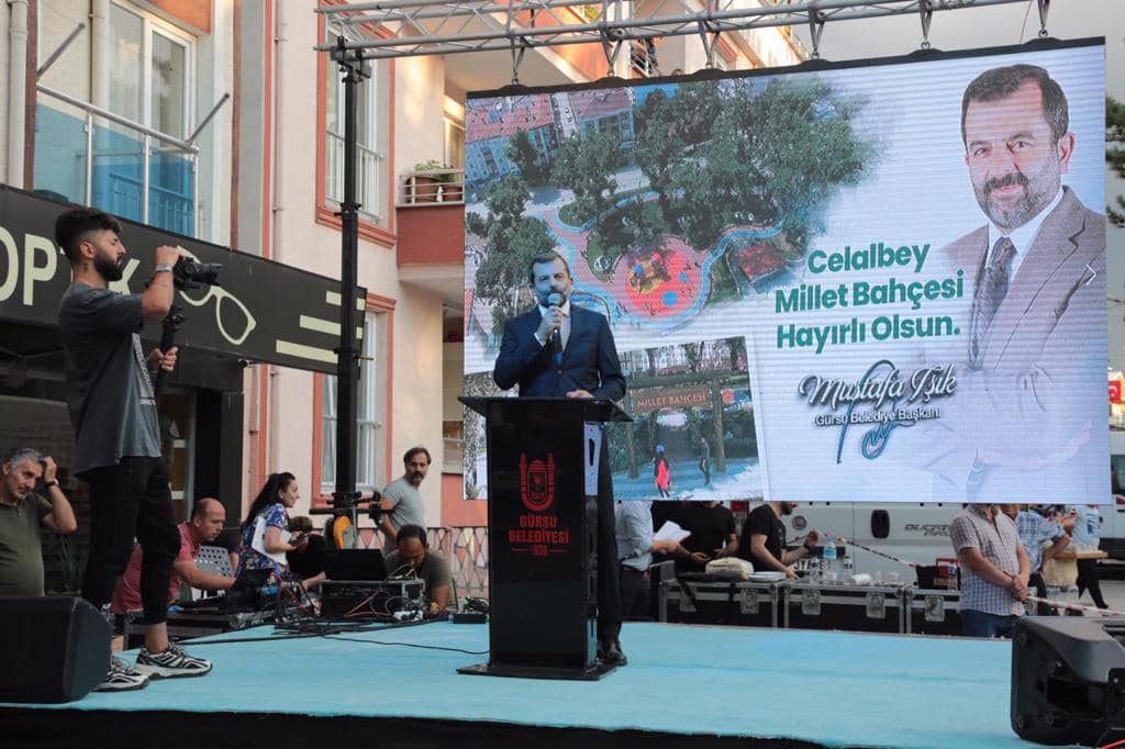 “Gürsu’muzun nefes almasını sağlayan Celal Bey Millet Bahçe’miz, hemşehrilerimizin çocuklarıyla birlikte, yeşilin sardığı huzur dolu ortamda keyifle zaman geçirdiği bir sosyal yaşam alanı olarak hizmet vermekte” diyen Gürsu Belediye Başkanı Mustafa Işık, “İlçemizin merkezinde, yıllarca atıl olarak duran alanda, muhalefetin tüm karşı çıkmalarına ve engellemelerine rağmen verdiğimiz mücadeleyle yaptığımız çalışmalarla oluşturduğumuz Celal Bey Millet Bahçe’miz, ilçemize nefes aldırmasının yanında geçekleştirdiğimiz etkinliklere de ev sahipliği yapmakta. Gürsu’muzun kültür sanat yaşamının da buluşma noktası haline gelen Celal Bey Millet Bahçe’miz, ilçemizin yeni cazibe merkezi olarak hizmet vermekte. Celal Bey Millet Bahçe’mizde oluşturduğumuz Srebrenitsa katliamı anma köşesinde de, katliamın simgesi olan mavi kelebekle de dünya barışı ve tarihsel geçmişe duyarlılık sağlamayı hedefledik. Açılış törenimize katılarak mutluluğumuzu paylaşan tüm protokol mensuplarına ve hemşehrilerimize teşekkür ediyorum. Gürsu’muzu daha da güzelleştirmek hedefiyle, ilk günkü hizmet aşkıyla hedeflerimize doğru yürümeye devam ediyoruz. Gündüzü ayrı gecesi ayrı güzel Celal Bey Millet Bahçe’mizin doğal ortamında düzenlediğimiz etkinliklerimizin keyfini yaşamaya tüm hemşehrilerimizi bekliyoruz. İlçemize hayırlı olsun” dedi.