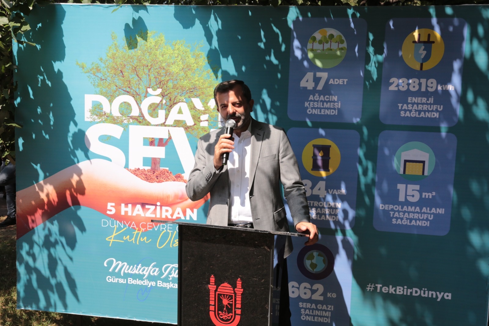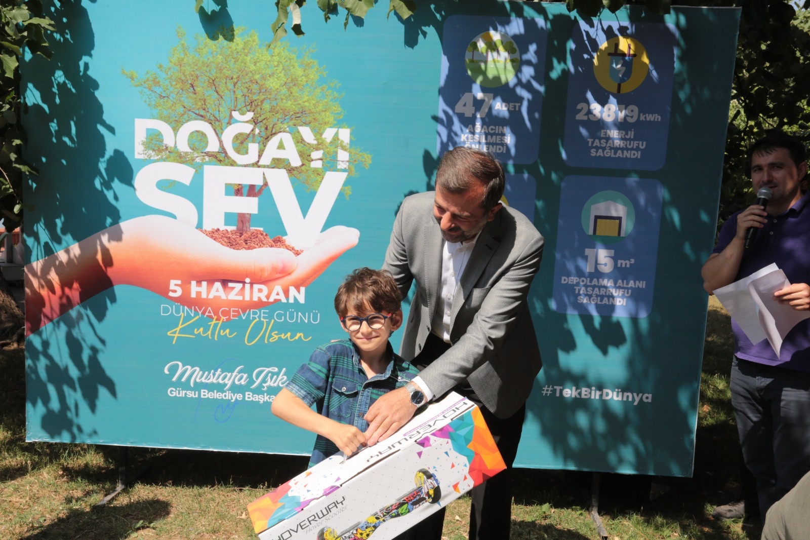 “Doğamızın korunması duyarlılığı vurgusu yapmak amacıyla düzenlediğimiz etkinliklerimizle, özellikle yeni nesillerimize dokunmak istedik” diyen Gürsu Belediye Başkanı Mustafa Işık, “Doğamızı koruma duyarlılığıyla yetişen nesillerimiz sayesinde dünyamız korunacak. Dünyamızı korumak hepimizin sorumluluğu. Bu bilince sahip yeni nesillerle, inşallah, kaynakları korunmuş, temiz bir dünyada yaşamak bizlere ve gelecek nesillere nasip olacak. Belediye olarak gerçekleştirdiğimiz kültürel etkinliklerde de sıfır atık projesini destekleyen uygulamalar yaparak çevrenin korunmasına duyarlılık kazandırıyoruz. Dönüştürülebilir atıkları getiren çocuklarımıza ve hemşehrilerimize ücretsiz sinema ve tiyatro biletleri hediye ediyoruz. Çocuklara evlerdeki bütün atıkların çöp olmadığını, sıfır atık sistemiyle birçoğunun geri dönüştürülerek doğanın ve kaynakların korunmasına katkı sağlanacağını öğretiyoruz” dedi.
