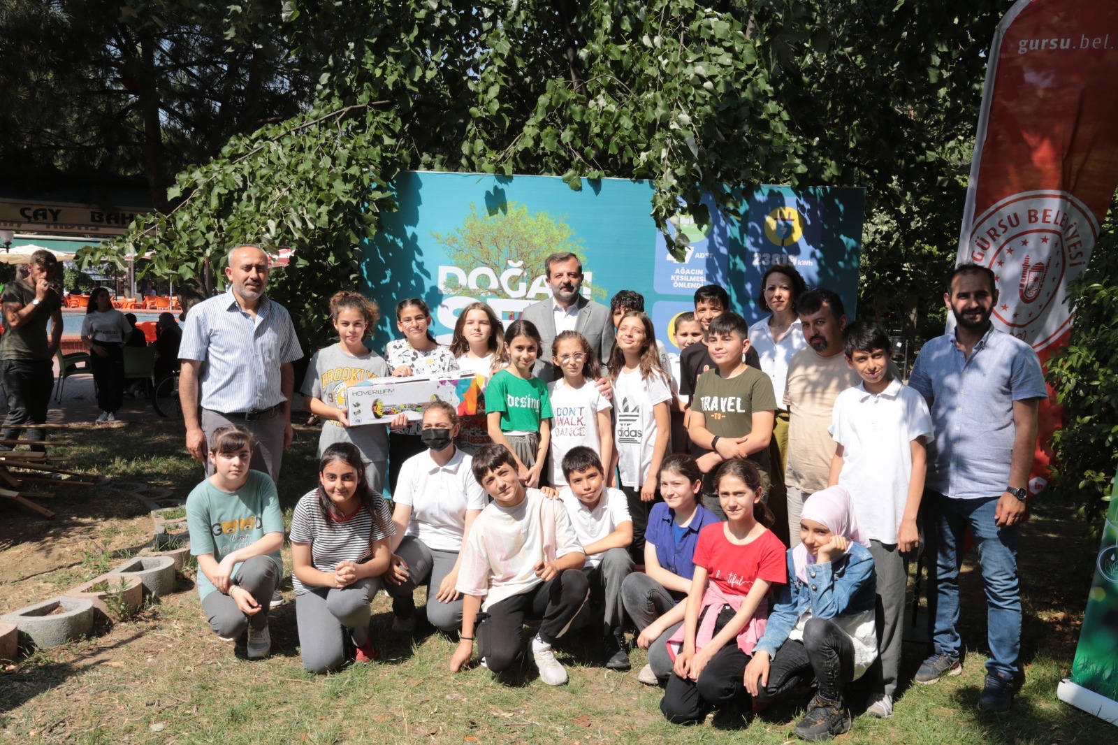 Gürsu Belediyesi’nce, daha yeşil daha temiz bir dünya için, doğal kaynakları daha verimli kullanarak israfı önlemek ve geleceğe temiz bir dünya bırakmak duyarlılığına sahip olan yeni nesiller yetişmesine katkı sağlamak hedefiyle; "Sıfır Atık ve Çevreye Kontrolsüz Bırakılan Atıkların Doğaya Verdiği Zararlar" konulu resim yarışması, "Atık Malzemelerden Geri Dönüşüm Kutusu Tasarım Yarışması" ve "Gürsu İlçesi Okullar Arası Geri Dönüşüm Atıkları Toplama Yarışması" başlıklarında düzenlenen yarışmalarda dereceye giren öğrencilere; bisiklet, tablet, akıllı saat, hoverboard, elektrikli scooter ve stratejik oyun seti hediye edildi.