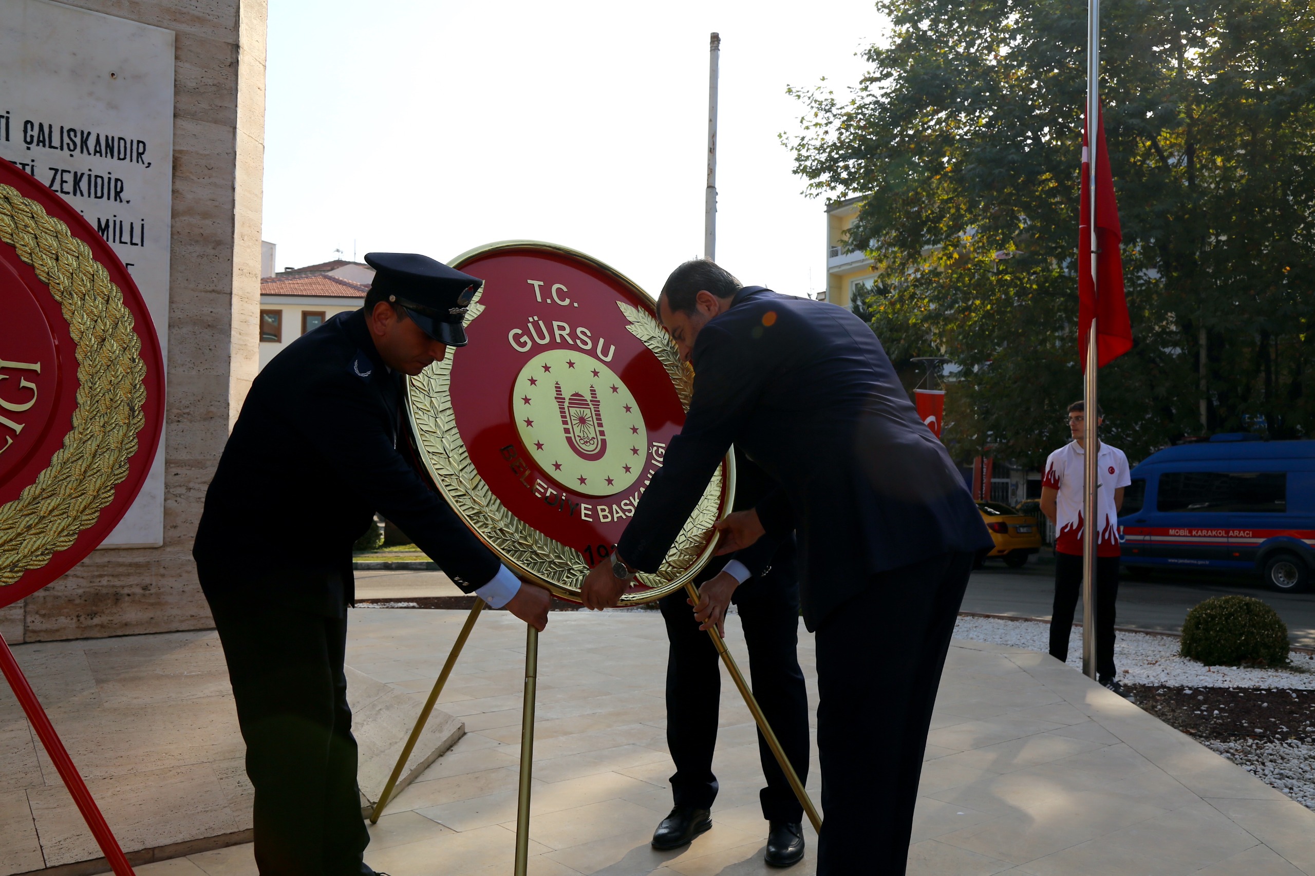 Gürsu Belediyesi ilçe protokolü ile Kent Meydanı’nda düzenlenen 30 Ağustos Zafer Meydanı anma töreninde bir araya geldi. Gürsu Belediye Başkanı Mustafa Işık, Gürsu Kaymakamı Naif Yavuz ile beraber Atatürk anıtına çelenk bıraktı.