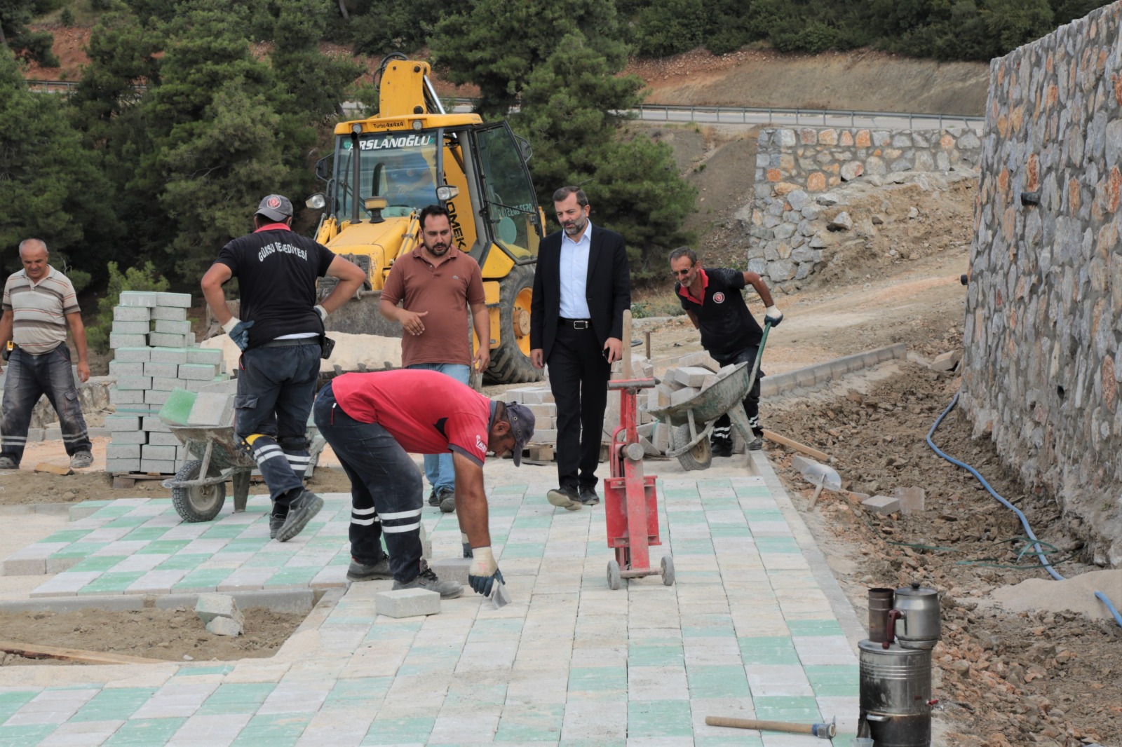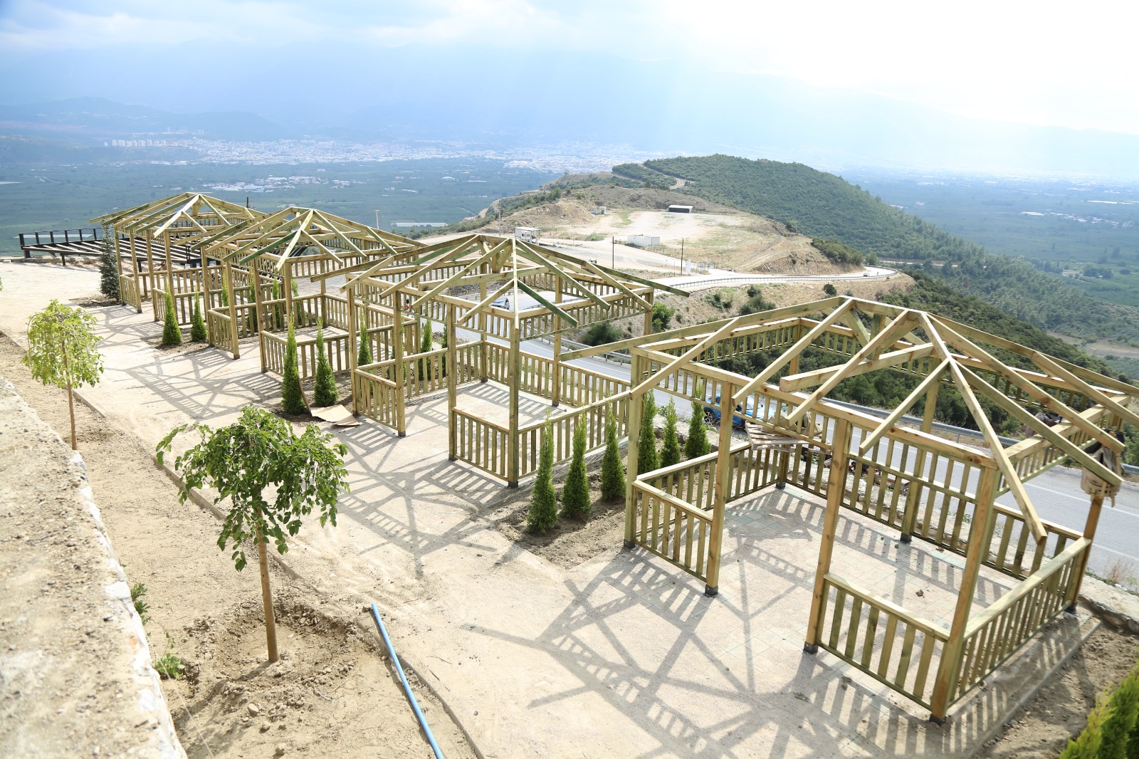 Gürsu Belediyesi’nin Katırlı Dağı yolu üzerinde, Bursa’ya nazır panoramik manzaraya hakim tepede oluşturduğu “Gürsu Seyir Terası” nın inşası hızla ilerliyor.