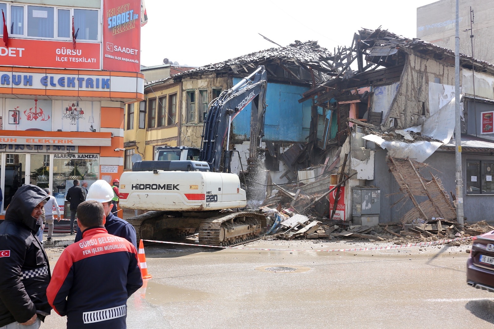 Gürsu’nun en işlek caddelerinden biri olan Atatürk Caddesi üzerinde bulunan metruk bina, olası riskleri ortadan kaldırmak amacıyla yıkıldı.