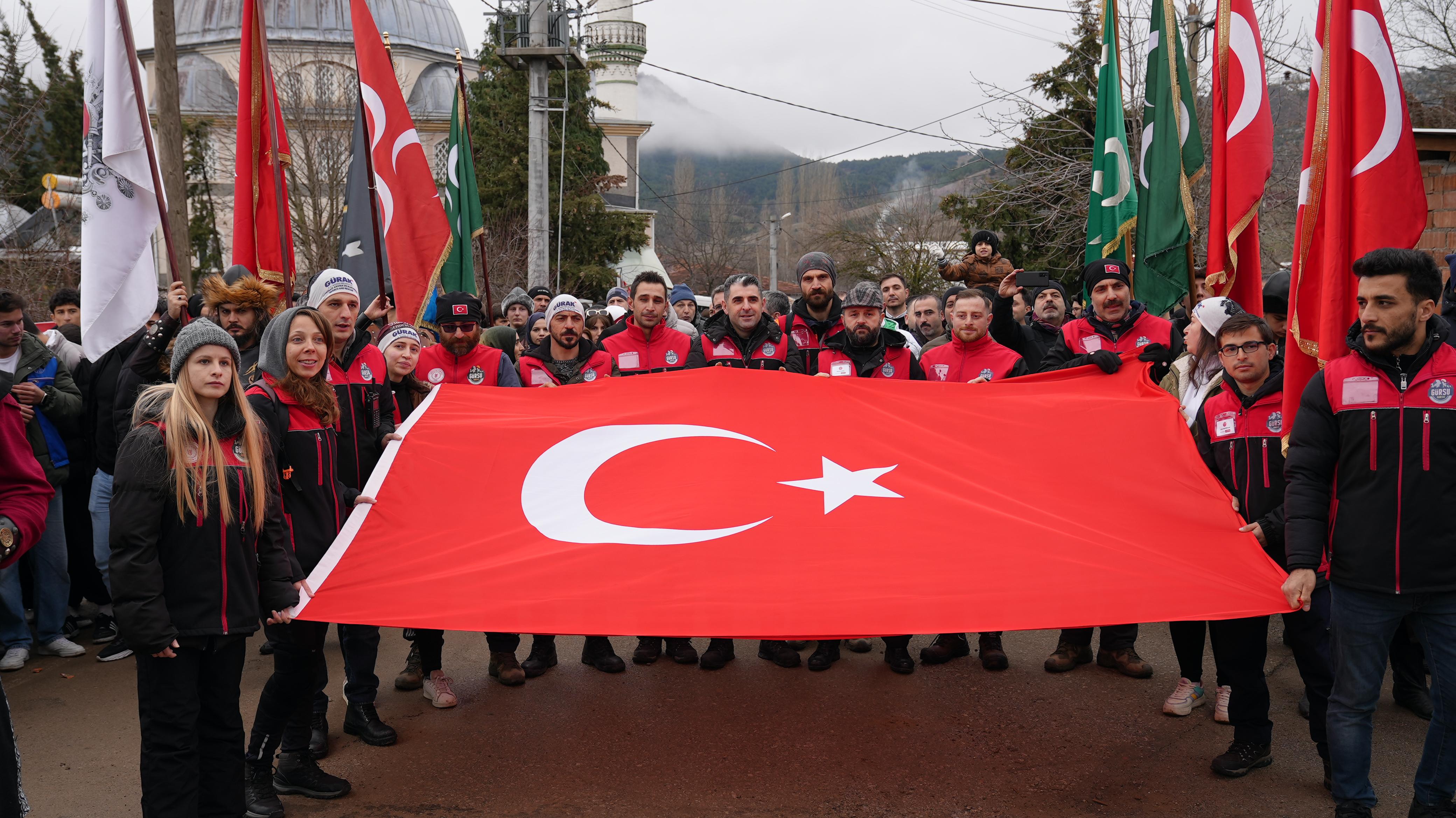 Her yıl istisnasız düzenlenen Sarıkamış Şehitleri’ni Anma Yürüyüşü, Ericek Köy Meydanı’nda dualar eşliğinde başladı. Gürsu Arama Kurtarma Ekibi GÜRAK, dağcılık kulüpleri, İHH temsilcilerinin de katıldığı yürüyüşe gençlerden ve öğrencilerden yoğun katılım oldu. Okunan marşlarla beraber, başı atlı kortejin çektiği yürüyüş, şehitleri anan sloganlar ve nidalar eşliğinde Katırlı Dağları’na doğru gerçekleştirildi.
