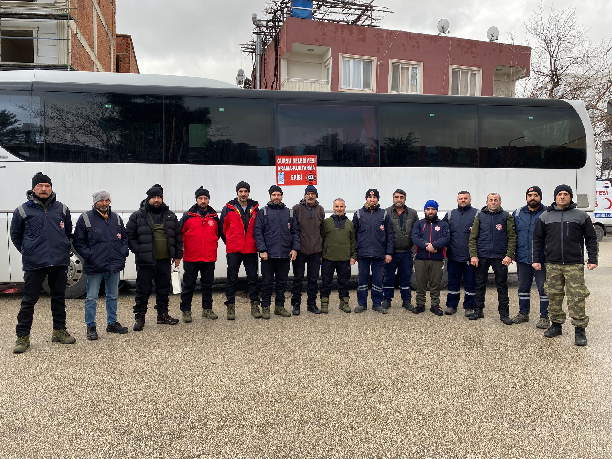 Deprem felaketinin yaşandığı şehirlerdeki arama kurtarma çalışmalarına destek olmak amacıyla Gürsu’dan yola çıkan 18 kişilik arama kurtarma ekibi Kahramanmaraş’a ulaştı.