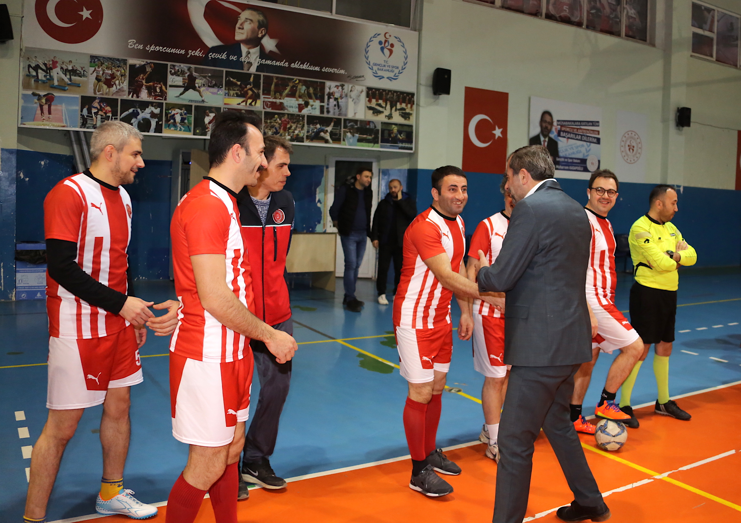 Futsal Turnuvası’nın başlangıç vuruşunun ardından sporculara tek tek başarılar dileyen Başkan Işık, takımlarla çekilen hatıra fotoğrafı sonrasında başlayan müsabakayı protokol üyeleriyle birlikte izledi.