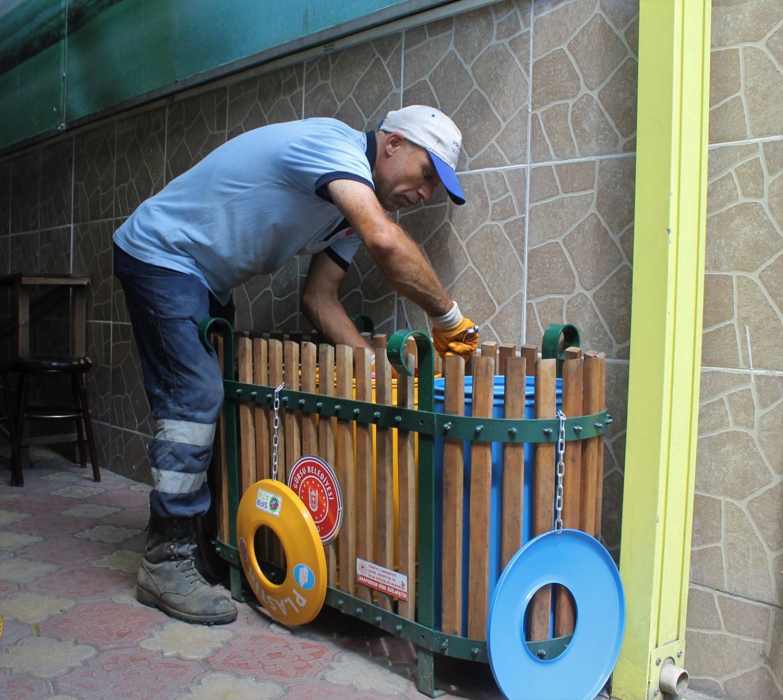 Gürsu Belediyesi’nce Çevre, Şehircilik ve İklim Değişikliği Bakanlığı’na sunulan Sıfır Atık Yönetim Sistemi Projesi’yle kazanılan hibe desteğiyle alınan 70 adet üç bölmeli geri dönüştürülebilir atık toplama ünitesi, Gürsu’nun camilerine yerleştiriliyor.