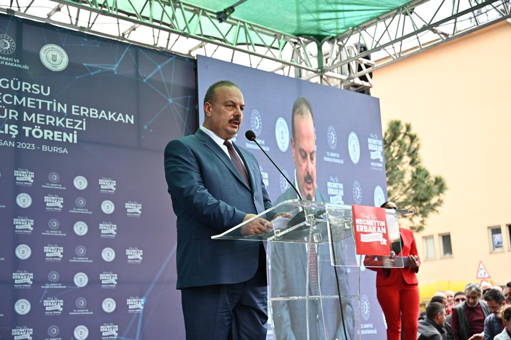 Törende konuşan Sanayi ve Teknoloji Bakanı Mustafa Varank, Kültür Merkezi’nin Gürsu’ya değer katacak, gençleri geleceğe hazırlayacak önemli bir yatırım olduğunu vurguladı. Ülkenin kalkınmasının yolunun nereden geçtiğini bildiklerini belirten Bakan Varank, “Biz, 21 yıldır, taş üstüne taş koymanın bu ülkeye hizmetleri kazandırmanın, Bursalı hemşehrilerimizi en güzel yatırımlarla buluşturmanın derdinde olduk. Onun için gayret gösteriyoruz. İşte bugün açılışını yaptığımız Kültür Merkezi de, okuma salonlarıyla, kütüphaneleriyle, etkinlik alanlarıyla hem ilçemize hem buradaki vatandaşlarımıza, hem de buradaki genç kardeşlerimize hizmet edecek. Burada 24 saat açık bir kütüphanemiz olacak. Çay kek bedava olacak. Burada gençlerimiz gelecekler, ders çalışacaklar, geleceğe kendilerini hazırlayacaklar. Biz sadece bugünü kurtarmanın derdinde değiliz. Biz Türkiye’yi muasır medeniyetler seviyesinin üzerine çıkarmanın derdindeyiz. Onun için 21 yıldır yaptığımız gibi inşallah önümüzdeki dönemde de Sayın Cumhurbaşkanı’mızın liderliğinde yolumuza kararlılıkla devam etmemiz lazım. Bu Kültür Merkezi’nin adı Prof. Dr. Necmettin Erbakan. Merhum Erbakan Hocamız çok vizyoner bir insandı. Dava adamı bir insandı. Bugün bu açılışı yaparken Ankara’da ne oldu biliyor musunuz? Erbakan Hocamız’ın hep hayali olan, Türkiye ilk defa kendi jet motorlu uçağını bugün Ankara’da uçurdu. Türkiye’nin otomobilini yapmak Erbakan Hocamız’ın hayaliydi. İşte Togg’u biz gerçekleştirdik. Türkiye’nin tankını yapmak Erbakan Hocamız’ın hayaliydi, Altay tankını ordumuza teslim ettik. Türkiye’nin uçağını yapmak Erbakan Hocamız’ın hayaliydi. İşte bugün jet motorlu uçağımızı uçurduk. Biz bu ülkeyi kalkındırmanın, bu ülkeyi kendi ayakları üzerinde tutmanın yolu nereden geçiyor bunu gayet iyi biliyoruz. İnşallah yolumuza aynı kararlılıkla devam edeceğiz. ” dedi.