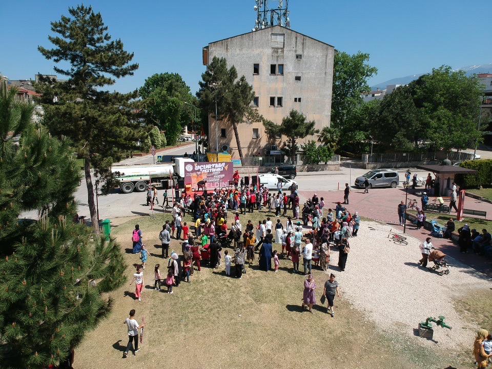 Gürsu Kent Meydanı’nda düzenlenen şenlikte çocuklar; Hacivat Karagöz ve sihirbaz gösterileriyle, palyaçolarla, sokak oyunları, şişme oyun parkı ve yarışmalarla doyasıya eğlendi.