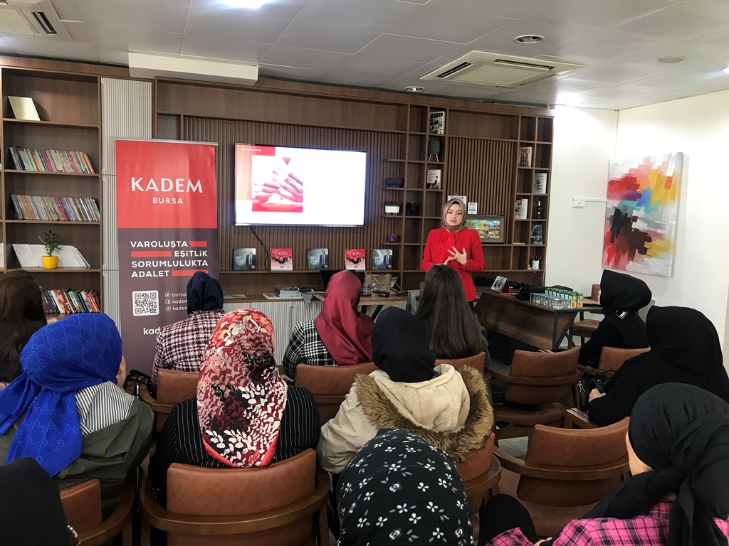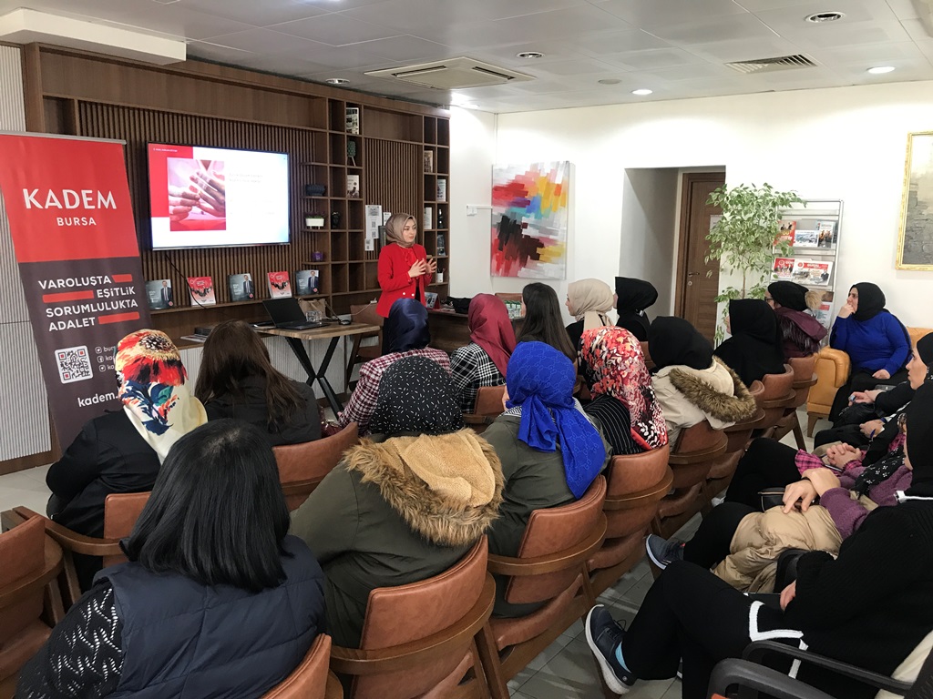 Gürsu Belediyesi ve KADEM (Kadın ve Demokrasi Derneği) iş birliğinde gerçekleştirilen programda, katılımcılar, Av. Hilal Uygan tarafından yapılan sunumda; kadının şiddet karşısında ve yaşaması muhtemel olumsuzluklarda sahip olduğu yasal haklar konularında bilgilendirildi.