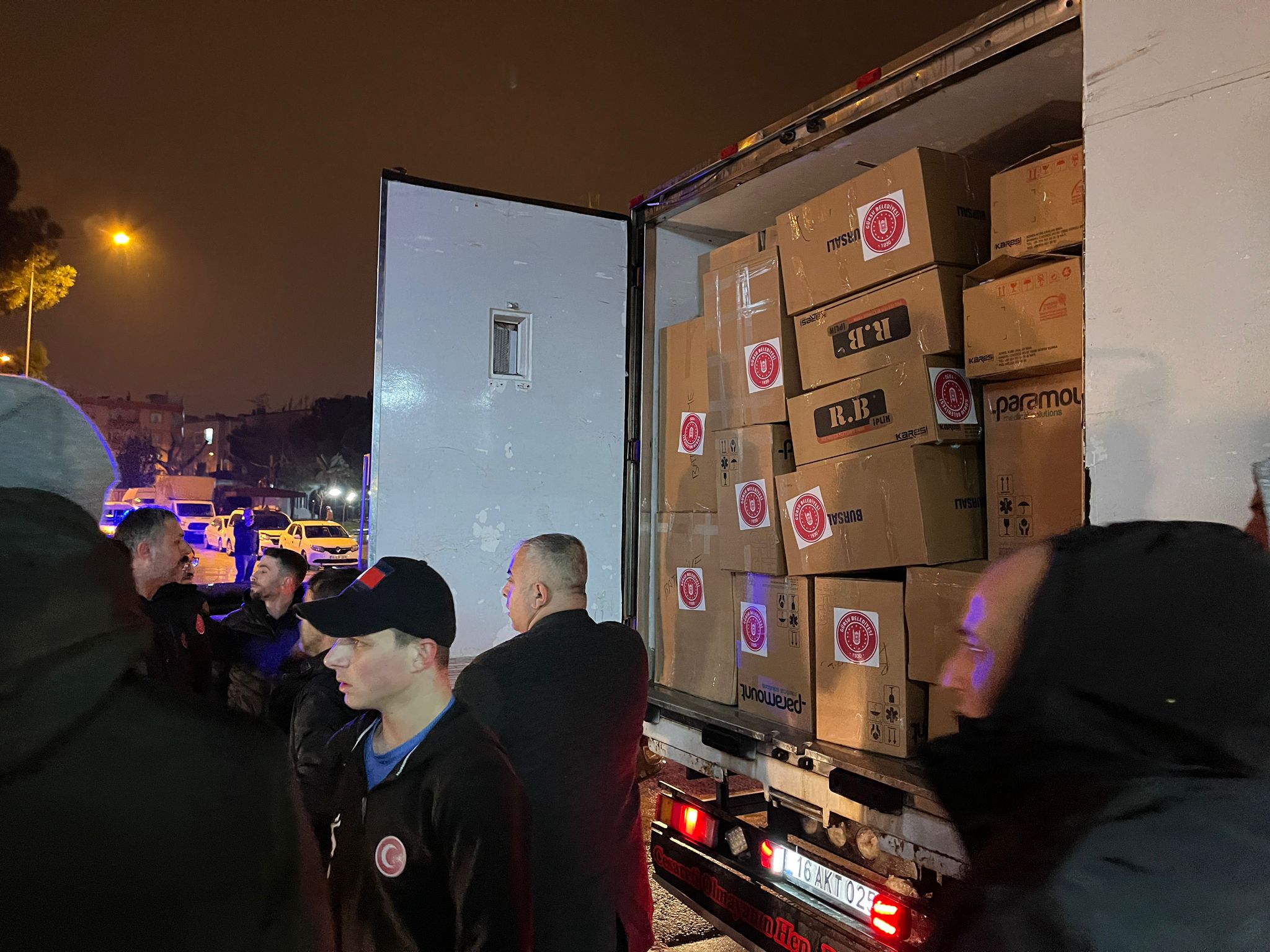 1 adet kamyon ve kepçe, 4 adet seyyar wc, 1 ton akaryakıt, 200 adet cenaze levazımı Hatay’a; 2 adet minibüs Kahramanmaraş’a gönderilirken, battaniye, giyim ve gıda malzemeleri, bez, mama, ıslak mendil, hijyen bakım ürünleri, ısıtıcı, su ısıtıcı, su, oyuncak, halı v.b. malzemelerden oluşan koliler, Bursa İl Koordinasyon Merkezi aracılığıyla deprem bölgesine ulaştırılmak üzere yola çıkarıldı.